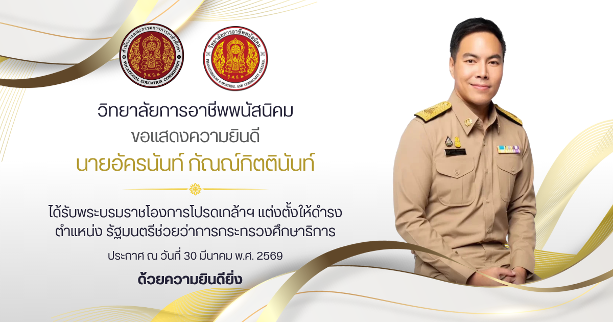 >> ประกาศ เรื่อง รายชื่อนักเรียนที่ได้รับคัดเลือกเข้าศึกษาต่อในระดับประกาศนียบัตรวิชาชีพ (ปวช.) ปีการศึกษา 2569 (รอบสอง) ![]()